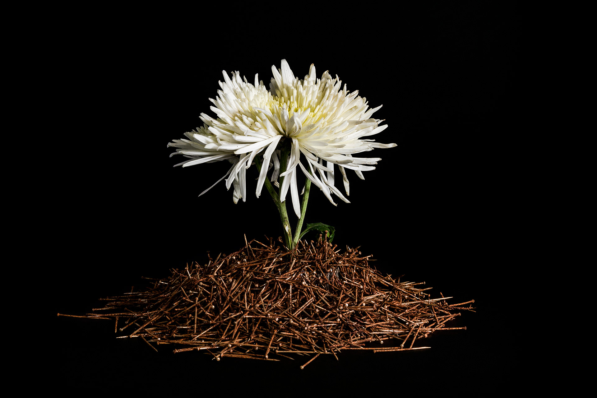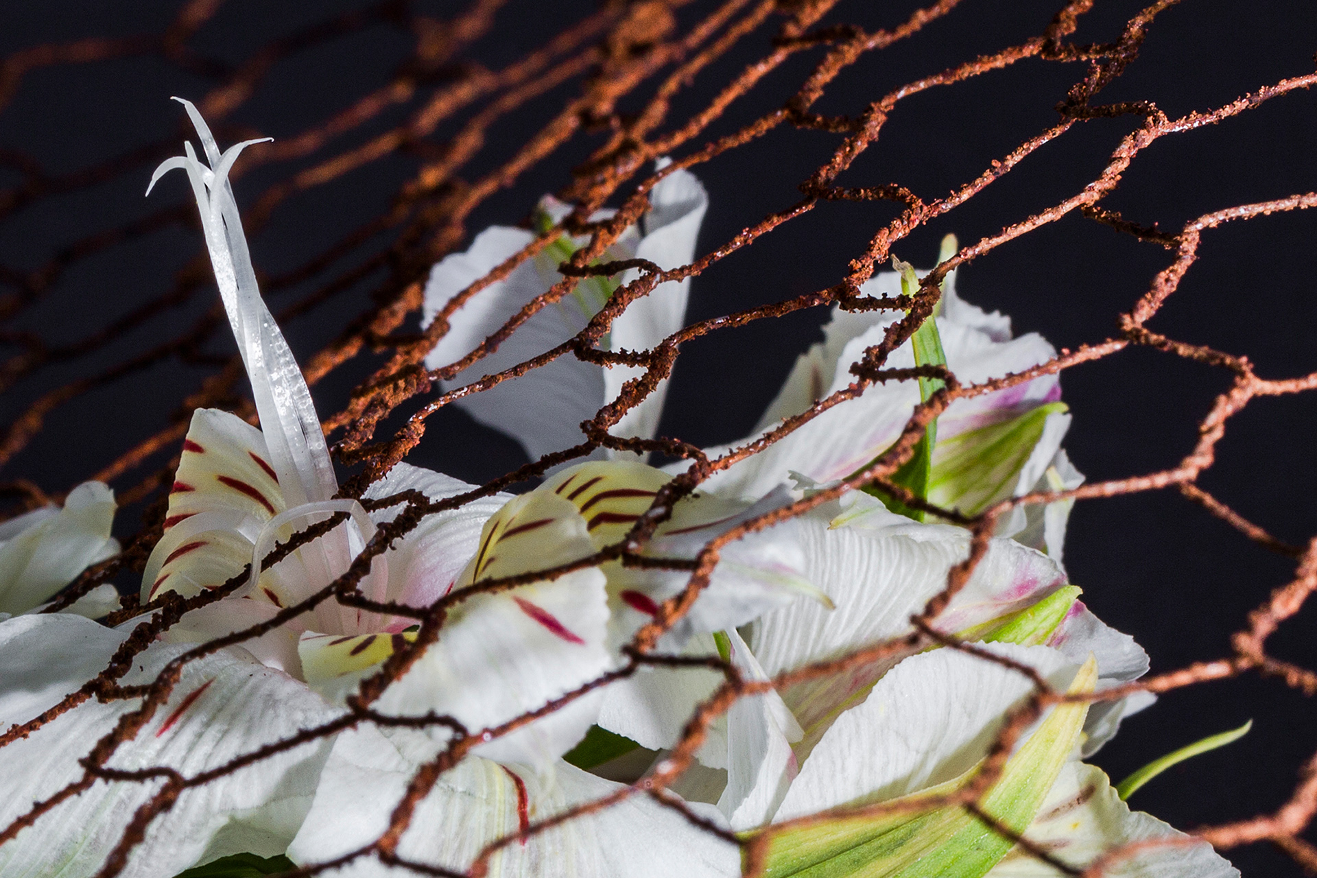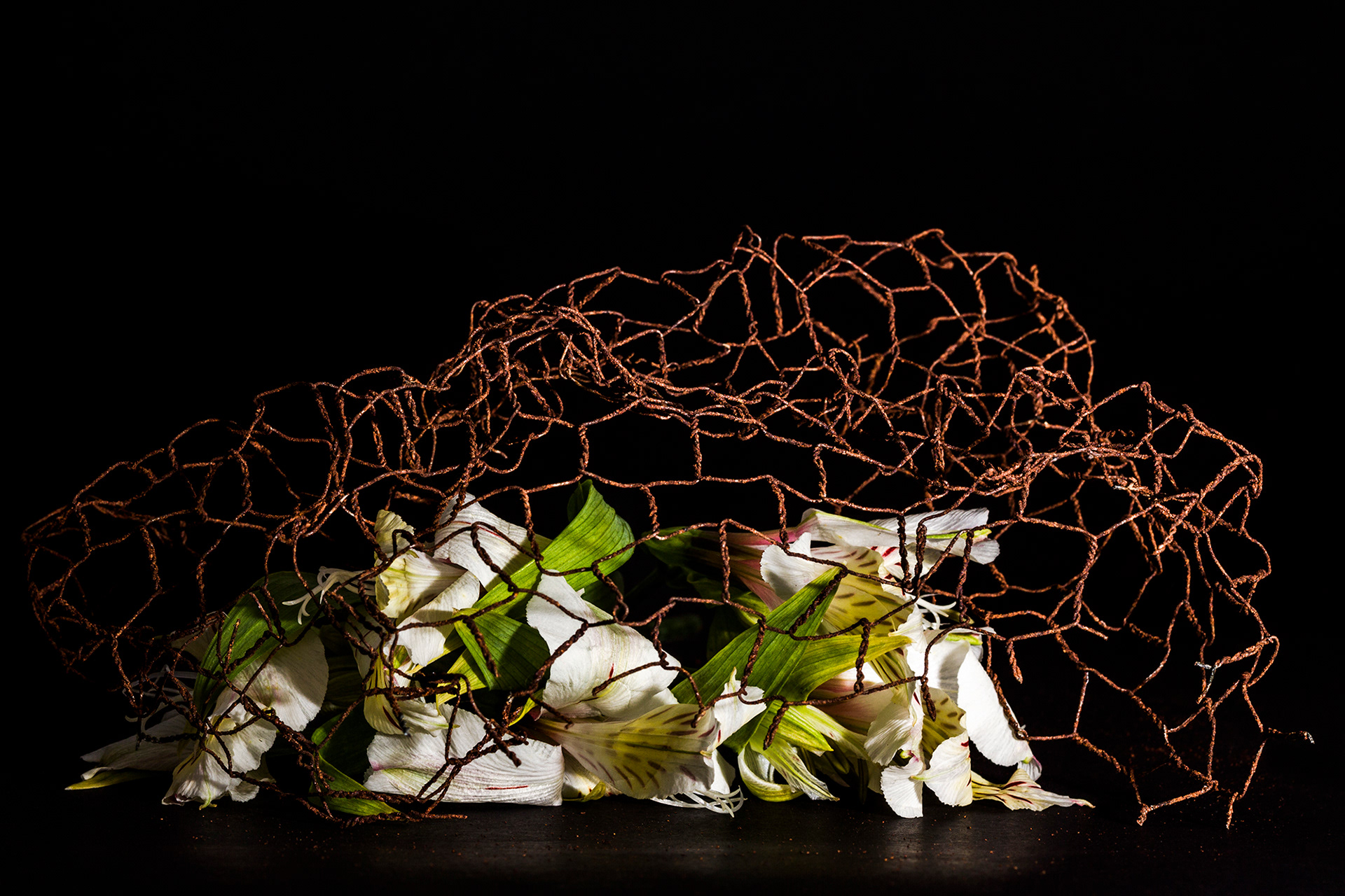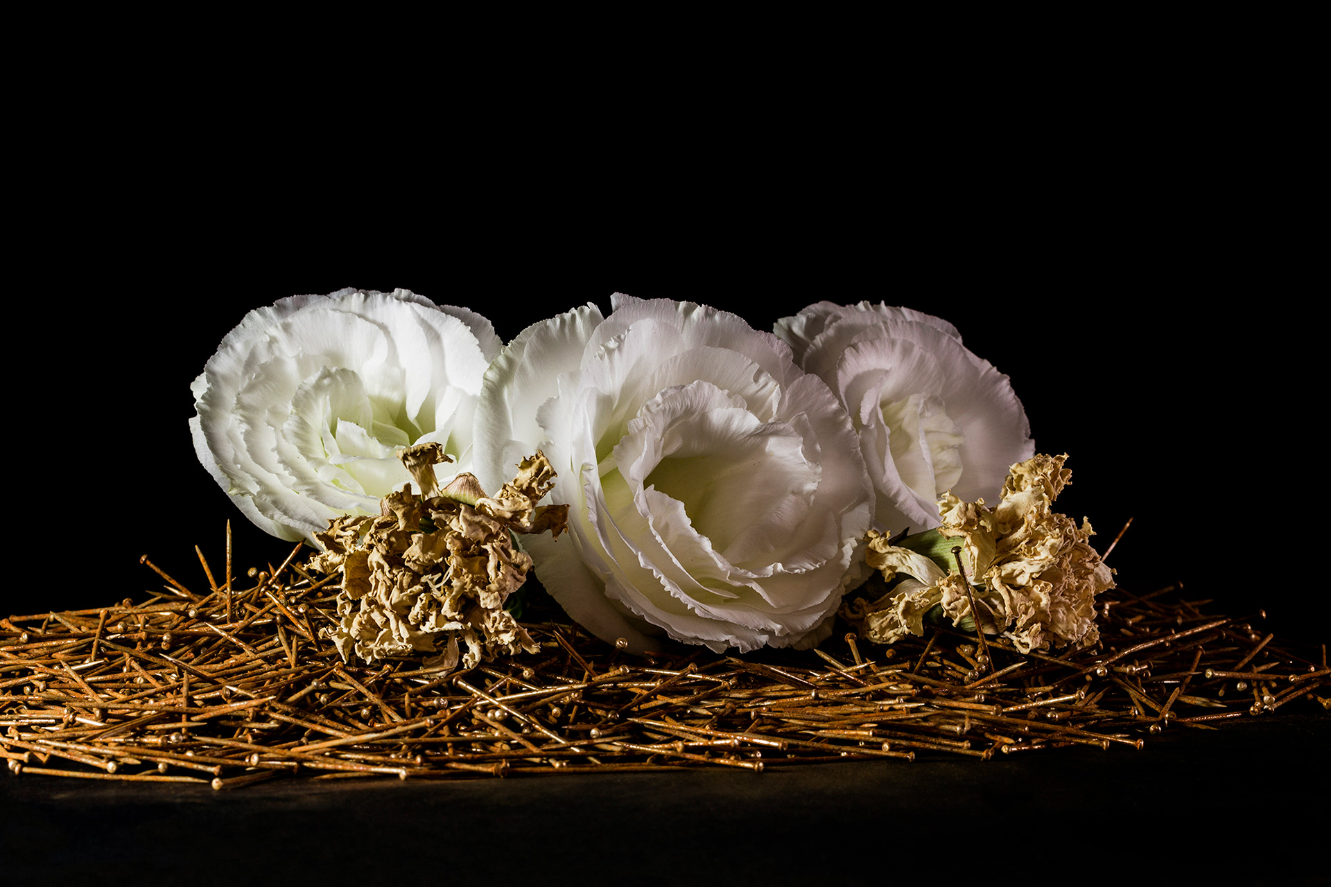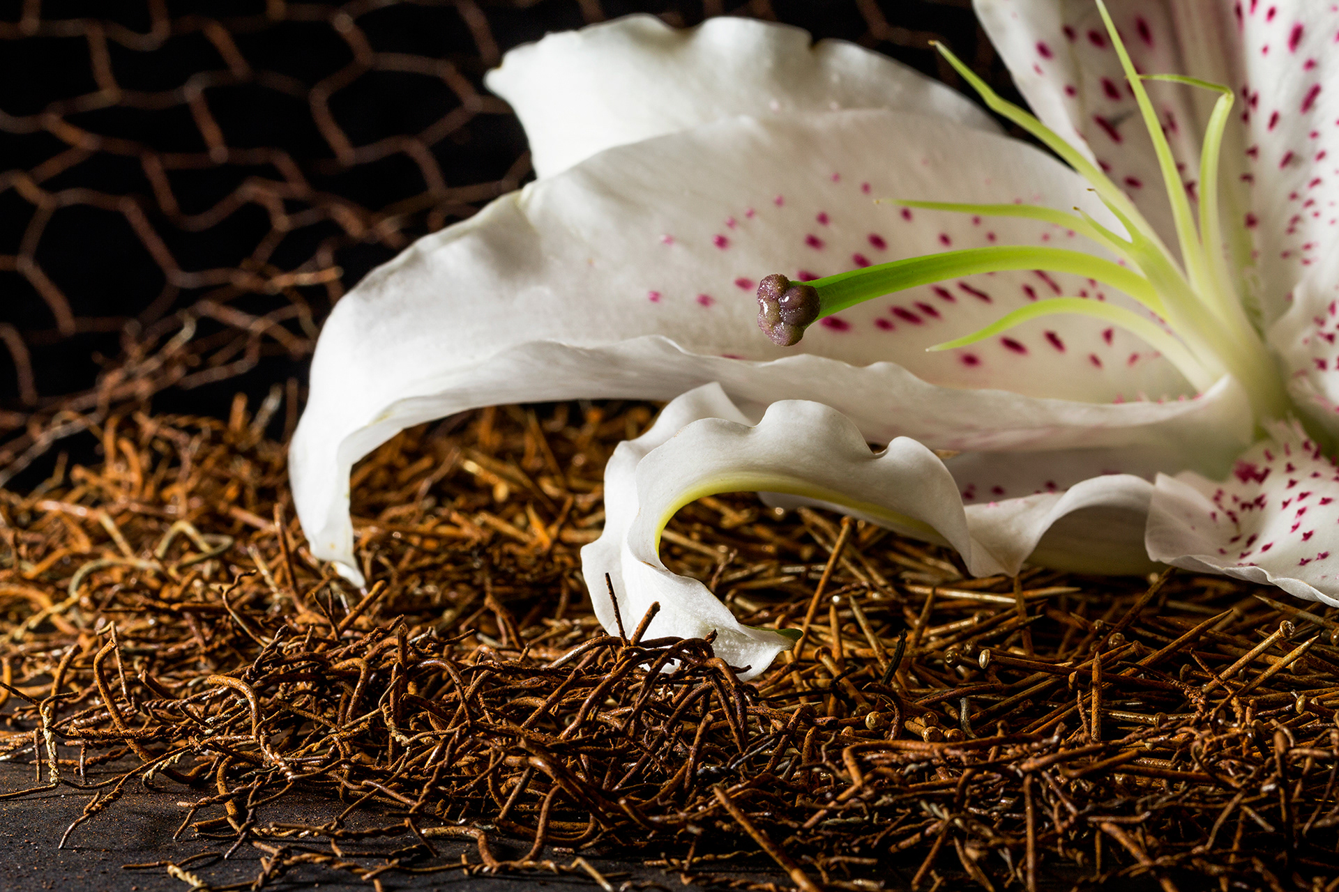 Delicadeza e inquietude se misturam numa angustiante redução do espaço e do tempo. Tempo que corrói o delicado e tempo que tem pressa na força da vida. O tempo que significa a degradação da matéria dá espaço à vida recém-saída do nada.